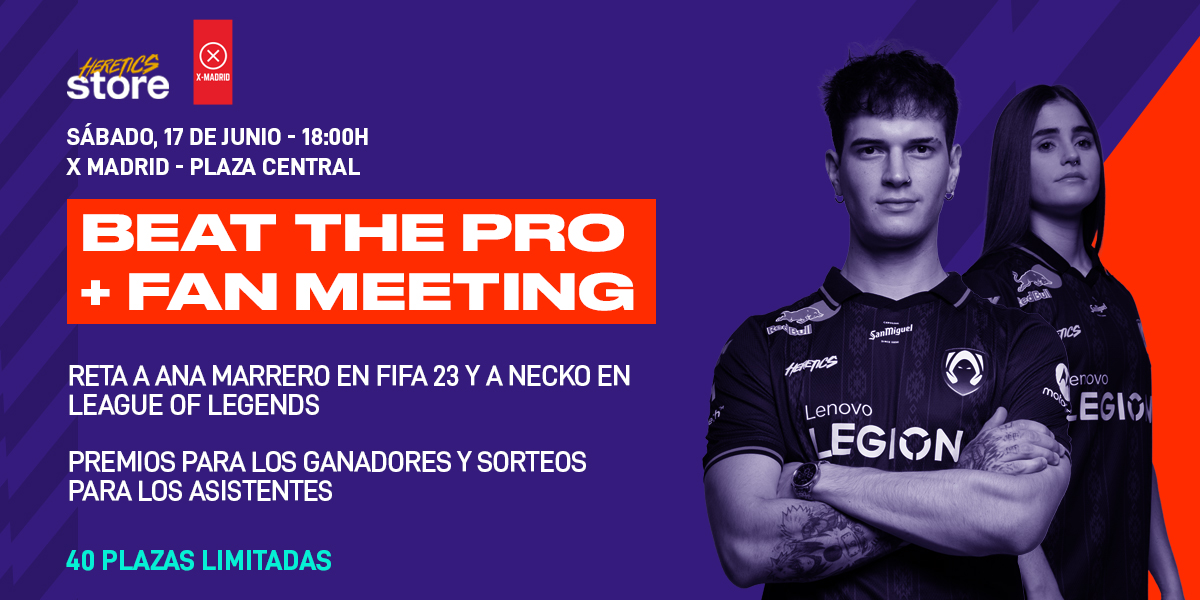 No te puedes perder el próximo Beat The Pro y Fan Meeting con los creadores de contenido de Team Heretics, Ana Marrero y Necko que tendrá lugar en X-Madrid. Además, se presentará un nuevo producto de Team Heretics que consiste en una manga técnica que se podrá comprar en EXCLUSIVA en X-Madrid del 15 al 29 de julio.