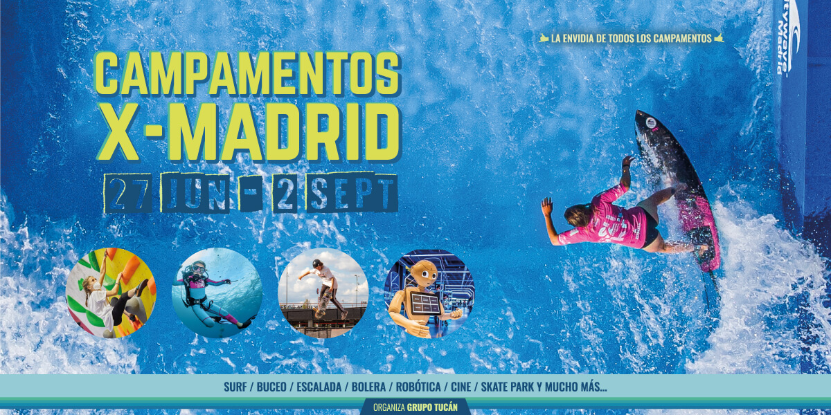 Estos campamentos se realizan íntegramente en X-Madrid y están organizados y gestionados por Grupo Tucán, empresa especializada con más de 21 años de trayectoria. En Grupo Tucán son apasionados con todo lo que tenga relación con la educación ambiental, las actividades de ocio, los deportes y los valores educativos. Su propósito es proporcionar a sus clientes experiencias recreo-educativas que además de la diversión les aporten valores personales que les ayuden en cualquier ámbito de la vida utilizando como medio la actividad física y el deporte. Sus servicios son siempre desarrollados por profesionales cualificados, licenciados en educación física, maestros, técnicos deportivos, monitores y coordinadores de tiempo libre con experiencia en el sector.