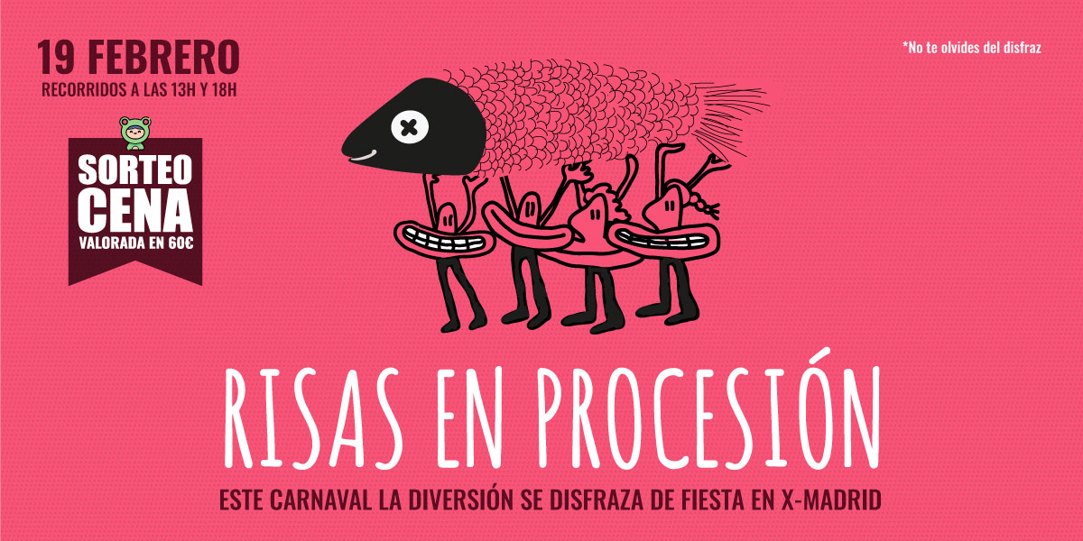 ¡Este año en X-Madrid también celebramos Carnaval! Y no podemos hacer esto sin música y sin disfraces! Queremos que busques ese disfraz que tienes desde hace tiempo o que te animes a improvisarlo. En X nos gusta lo atrevido, lo diferente y lo que en otros sitios nunca te atreverías a llevar! Vente a pasar el día a X-Madrid el próximo domingo 19 de febrero y échate unas risas con tus amigos o tu familia. Podrás divertirte acompañando a nuestra comparsa en su procesión y tendrás la oportunidad de conocer a nuestra sardina “Maricarmen”. Anota los horarios de las actuaciones a las 13h y a las 18h .