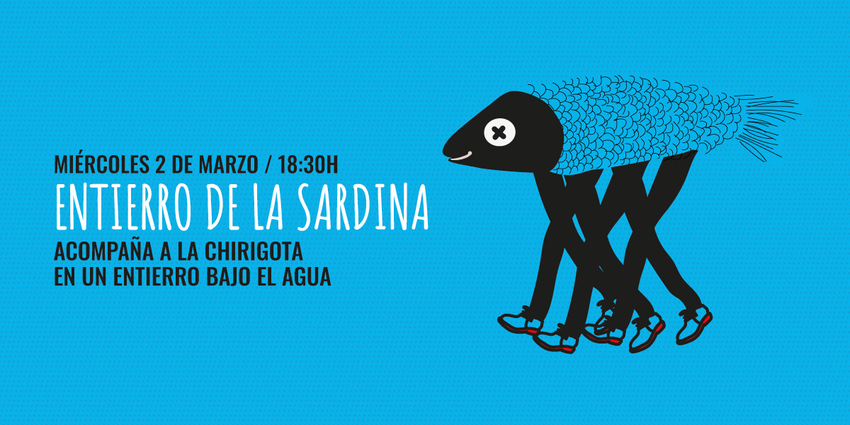 Acompáñanos en esta divertida ceremonia, en la que una chirigota llevará en procesión a nuestra sardina gigante (2 metros) por los pasillos de X-Madrid, para que se sume a esta celebración todo el que quiera. Un acompañamiento original y diferente que finalizará con el «entierro» de la sardina en las profundidades de Marepolis. Podrás ver como sumergimos a la sardina en la piscina frontal de Marepolis.