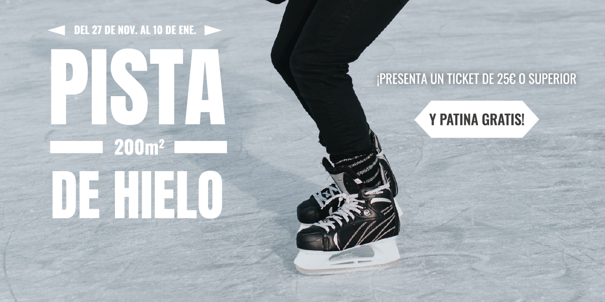 - Presenta el ticket/s en la taquilla de la pista de hielo, situada en la plaza exterior cubierta. Allí te sellarán tu tickets/s y te entregarán un pase gratuito para la pista de hielo.- Los pases gratuitos incluyen los patines, los guantes no están incluidos (puedes traer los tuyos o adquirir unos directamente en taquilla por 2,5€).