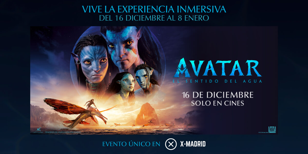 Seguro que ya te has enterado de que el próximo 16 de diciembre se estrena sólo en cines la tan esperadísima película AVATAR: El sentido del Agua”®️. La película ambientada más de una década después de los acontecimientos de la primera entrega cuenta la historia de la familia Sully, los problemas que le persiguen, los esfuerzos que hacen por mantenerse a salvo, las batallas que libran para seguir vivos y las tragedias que sufren. Dirigida nuevamente por el oscarizado James Cameron, este estreno promete ser un taquillazo a nivel mundial y las originales salas de nuestro Ocine X-Madrid ya están preparadas para ello ofreciendo en su cartelera un gran número de pases diarios. ¡Hazte ya con tu entrada!